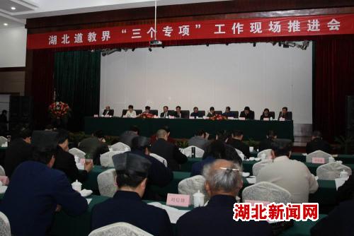 道教之音宜昌讯 为全面推进湖北道教界“道教教职人员认定备案、道教宫观财务监督管理、道教教职人员社会保障”等三个专项工作,总结推广先进经验,推动湖北道教界“三个专项”工作深入开展,3月30日至31日,湖北省道教协会在远安县召开了湖北道教界“三个”专项现场推进会。全国人大常委会委员、中国道教协会副会长张继禹亲临会议现场指导,湖北省统战部、省民宗委主要负责人出席会议并作讲话。