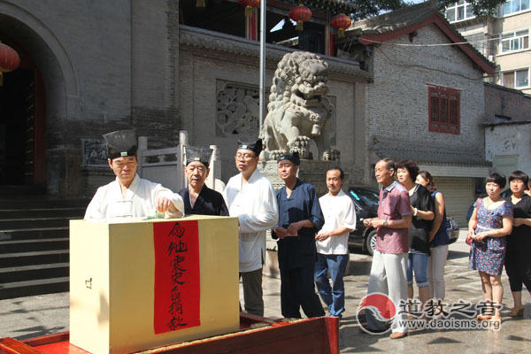 道教之音甘肃讯 7月23上午十时,由兰州市道协会长、白云观管委会主任陈理復道长发起组织为甘肃定西岷县、漳县地震进行捐款捐款仪式,得到了全体道众的积极响应。此次共筹集善款:21275元