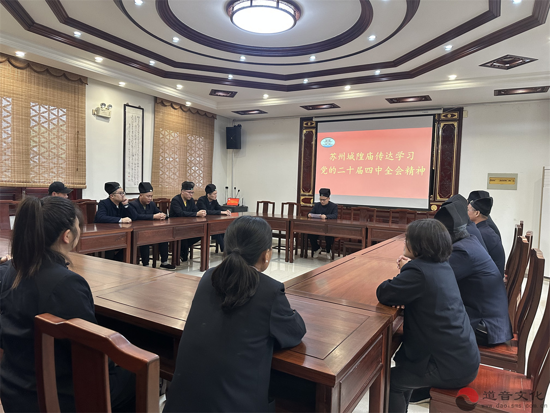 2025年11月2日下午14:00,苏州城隍庙组织道职员工在讲经堂开展专题学习。