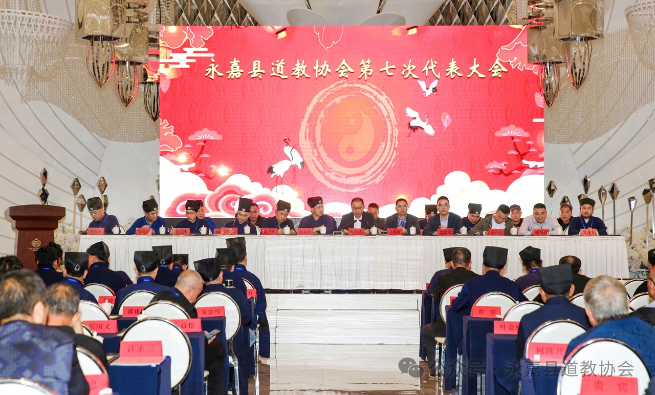 2025年10月31日,永嘉县道教协会第七次代表会议在永嘉上塘裕锦大酒店顺利召开。全县道教界共有101名代表参加此次大会。温州市民宗局党组成员、副局长马建星,四级调研员、宗教一处处长兰海波;永嘉县民宗局局长张德周;温州市道教协会常务副会长兼秘书长徐光勋等领导、嘉宾莅会指导。