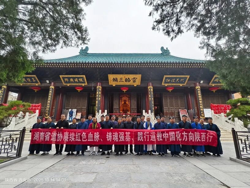 2025年10月9日至14日,为纪念中国人民抗日战争暨世界反法西斯战争胜利80周年,深化道教中国化实践,湖南省道教协会会长吴理之率省道协班子成员、南岳坤道学院教师代表等20余人,赴陕西省开展爱国主义教育和宗教中国化经验参访交流。省民宗委宗教二处应邀派员全程指导。