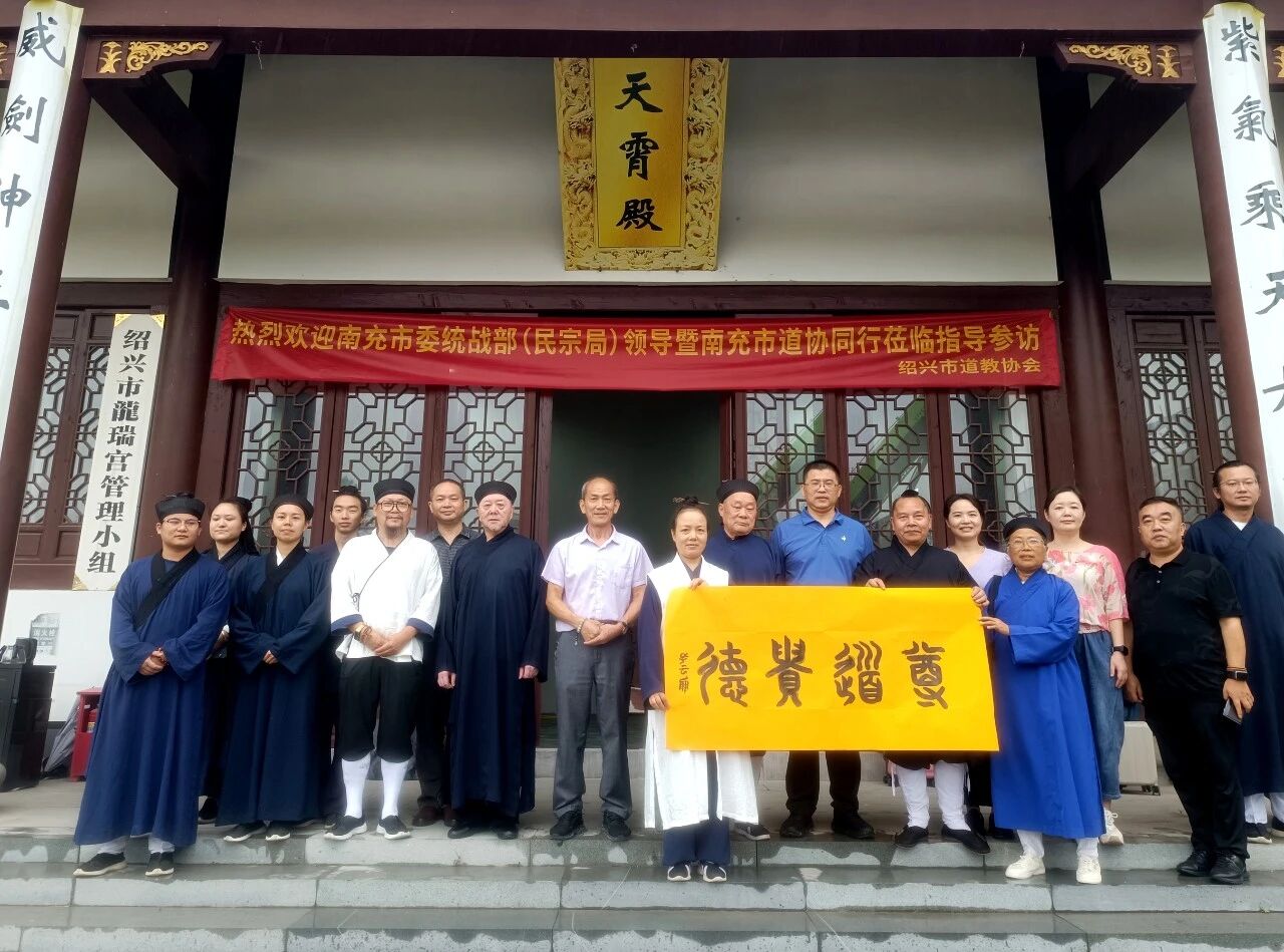 2025年10月18日,由中共南充市委统战部常务副部长何建新带队,南充市民宗局副局长李小庆、仪陇县委统战部副部长、民宗局局长张海燕、阆中市委统战部副部长、民宗局局长王泽波及南充市道教协会班子成员一行,赴绍兴市道协及龙瑞宫参访交流。在绍兴市道教协会会长孔云鹏道长的热情陪同下,参访团一行参观了绍兴市龙瑞宫,并举行座谈交流。